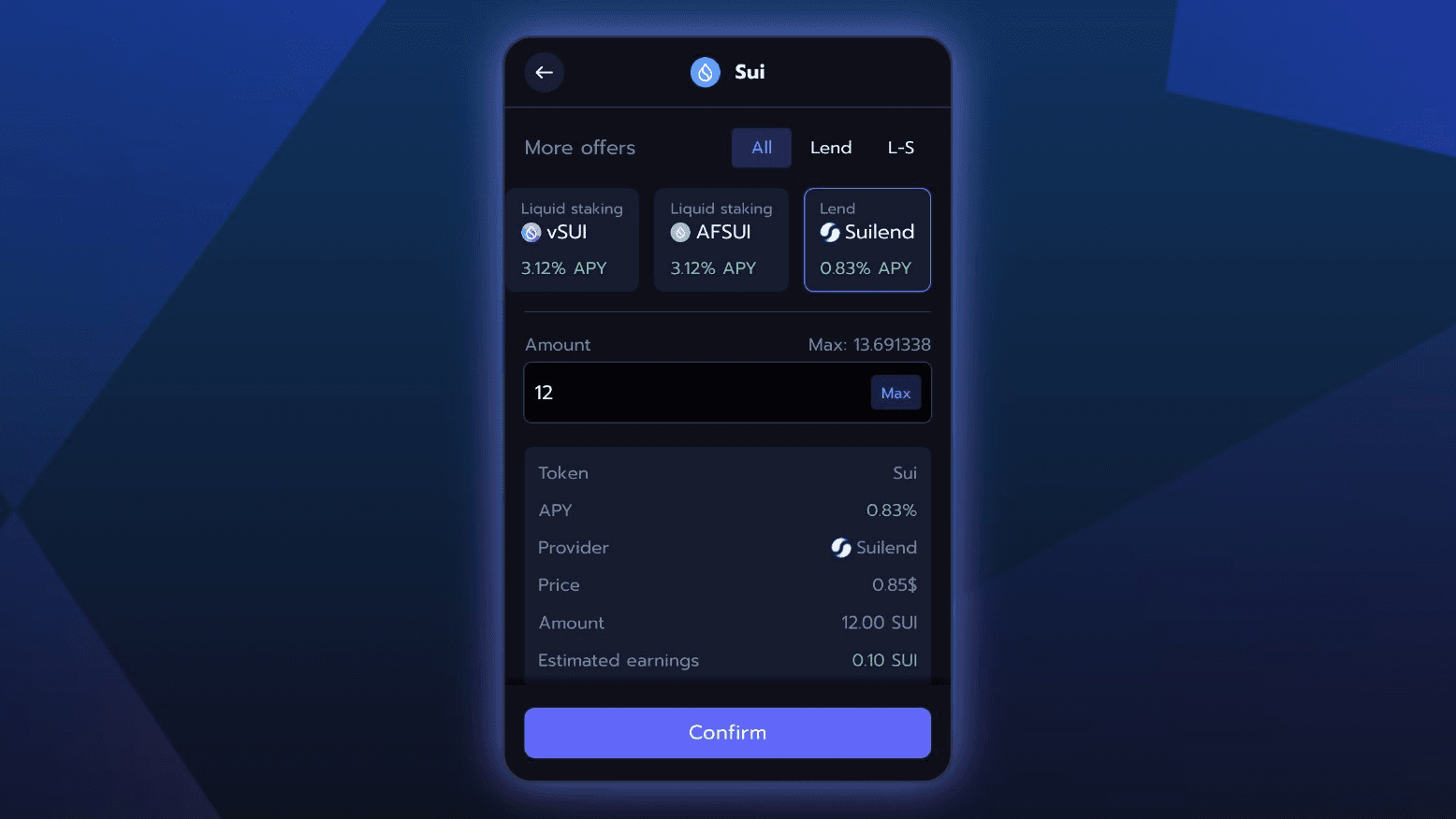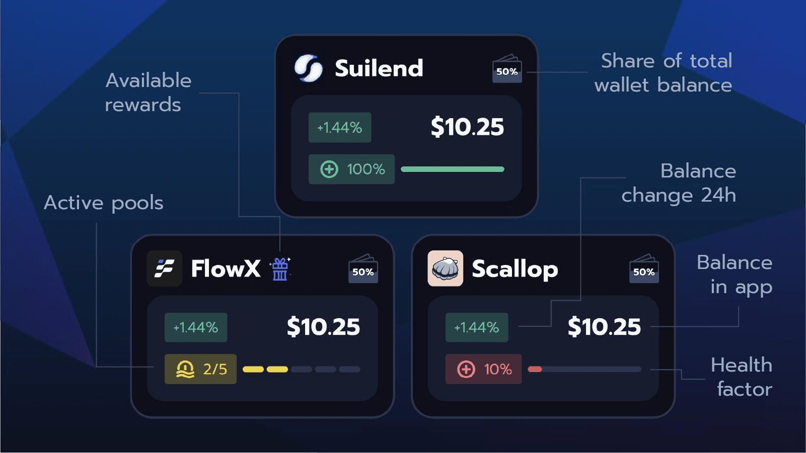 Portfolio management on the Sui Network was never so easy. Earn, monitor, and manage your assets and make your use of Sui extension and mobile wallets convenient